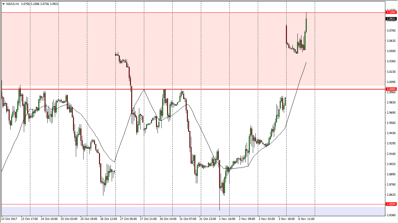Natural gas markets gapped higher at the open on Monday, pulled back slightly towards the $3.05 level, and then slammed into the $3.10 level. That’s an