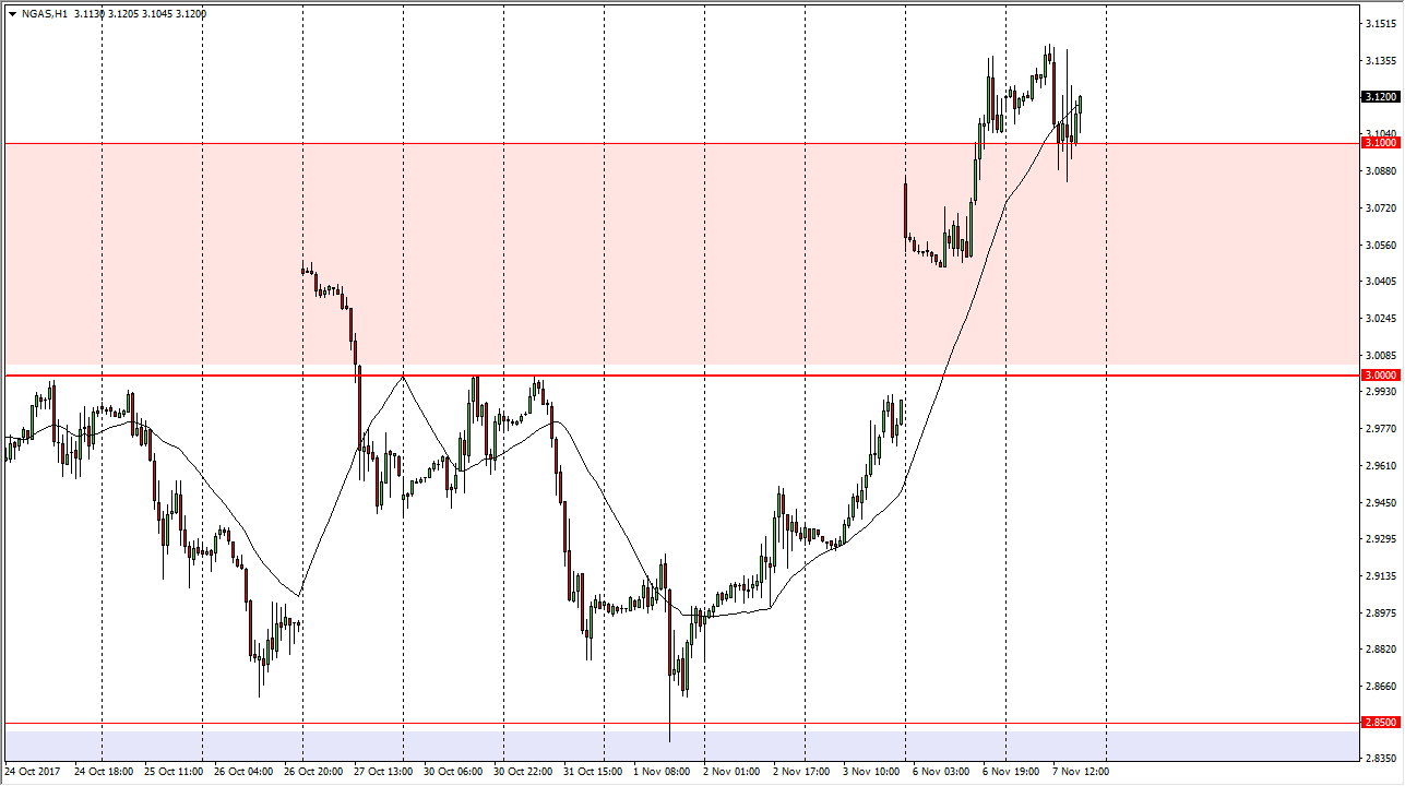 Natural gas markets have rallied significantly during the day on Tuesday, after pulling back to the $3.10 level again. That’s an area that has been massive resistance, and now that we have broken out above that level, it’s likely that we should continue to go towards the $3.20 level, perhaps even the $3.25 level after that. Temperatures in the United States are finally starting to fall, and this could be good for pulling down the inventory of natural gas that we currently have. Longer-term, I still think that natural gas will roll over, but we are heading to that time of year where markets tend to rise due to overall demand. I think the $3.30 level above will be the ceiling in the market, but clearly the buyers have jumped in and gotten aggressive at this point, so more often than not I think the buyers will return, if we can stay above the $3.00 level.
