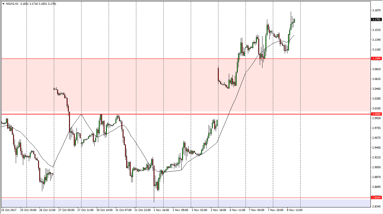 The natural gas markets fell initially during the trading session on Wednesday, testing the $3.10 level for support. We found it there, and for me that’s a very significant turn of events as it was an area that had been so resistive in the past. Because of this, the market more than likely will continue to go higher as we have put a temporary floor into the market at the very least. Natural gas markets have been climbing due to colder temperatures in the United States, as winter finally looks ready to appear. This obviously drives of demand, especially in the northeastern corridor, and that has a major influence on pricing. Structurally speaking, I remain very negative on natural gas, but I recognize that the seasonality also has its part to play in the situation.