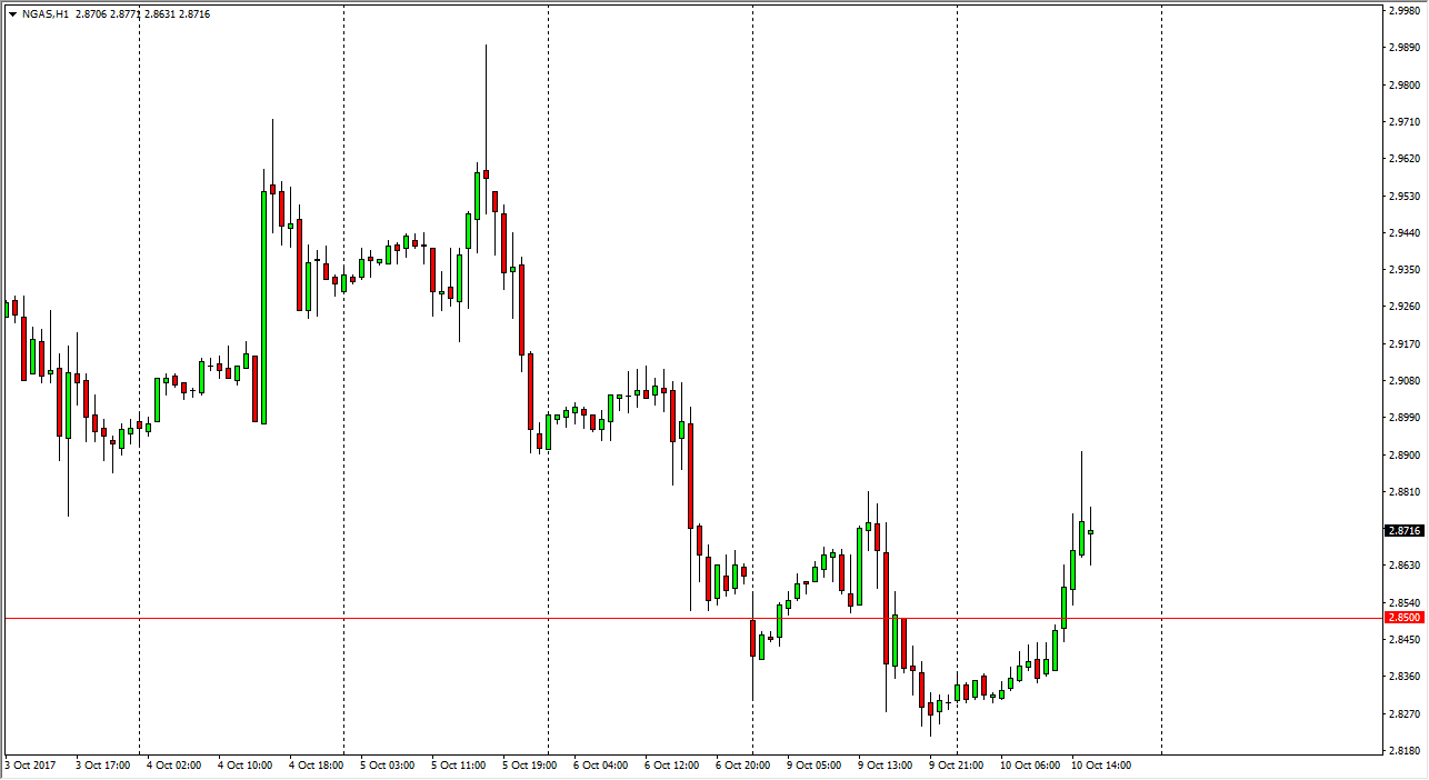 I still think that there is a significant chance of going down to the $2.75 level, and when I see this type of rally I am looking for an opportunity to start selling. In fact, this is a trade that I have done several times over the last several months, and have profited quite nicely. I believe that we could break down below the $2.75 level, but the $2.50 level underneath there would be much harder to clear. Sellers continue to run this market, and therefore I don’t have any interest in trying to fight that momentum. Given enough time, it’s likely that the market will find itself continually range bound between the $2.75 level and the $3.10 level. This is a market that continues to offer plenty of opportunities, if you are patient enough to take advantage of them.