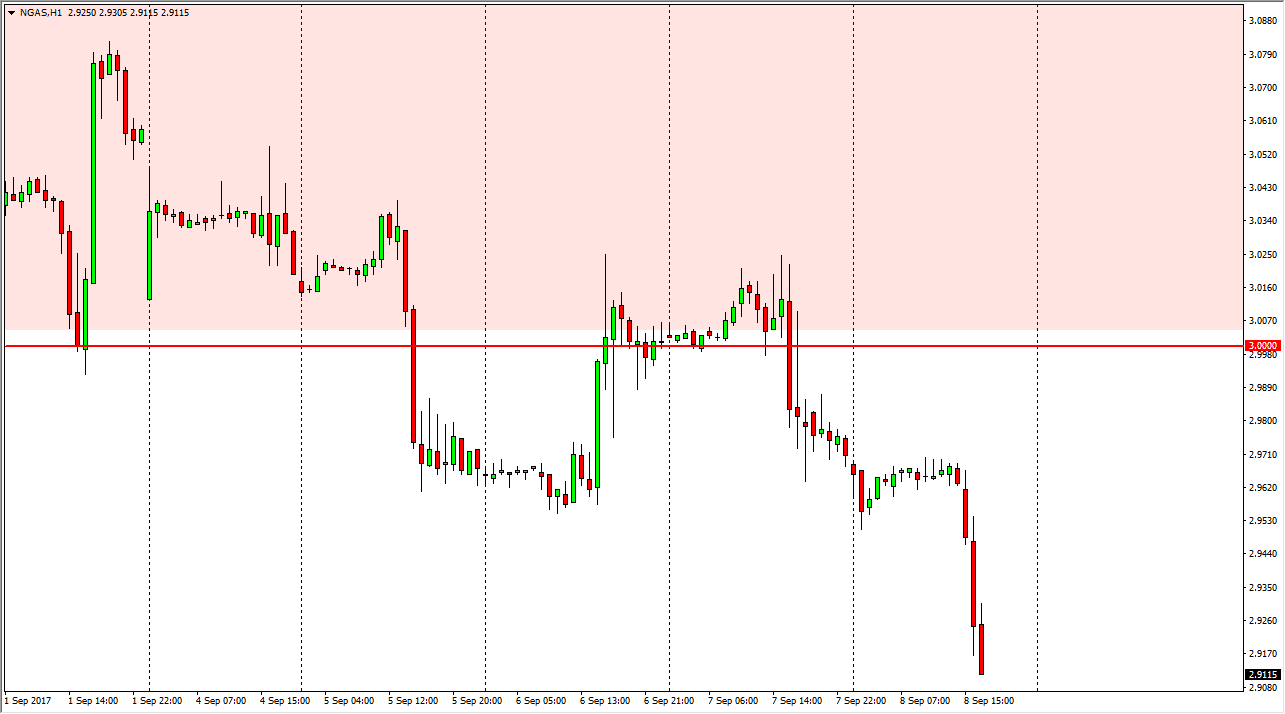 Natural gas markets initially went sideways on Friday, but once the Americans came on board, absolutely collapsed. Most of the recent bullish pressure has been due to traders anticipating a disruption of natural gas distribution, due to the hurricanes. However, that now appears to be very unlikely, and as a result the bearish pressure has returned. I believe that the $2.87 level will be targeted next, and that rallies will be selling opportunities. There is even more support near the $2.85 level underneath, which makes even more sense as a target. The $3 level continues to be massively resistive.