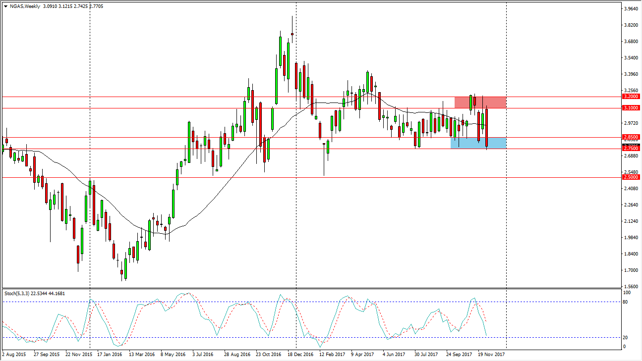 Natural gas markets fell significantly during the week, but we have seen a certain amount of support near the $2.75 level yet again.