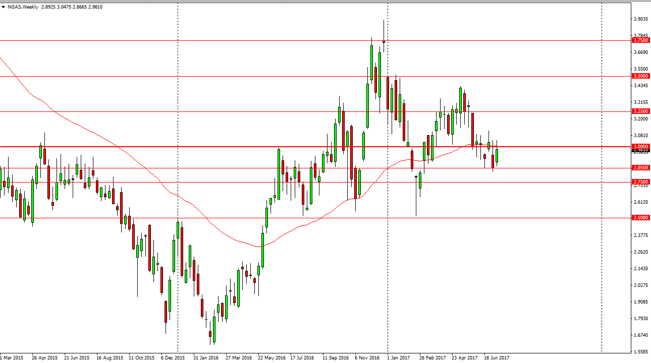 Natural gas markets rallied during the week, but as you can see struggled at the $3 level yet again. This is an area that seems to attract a lot of