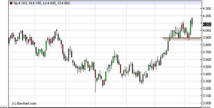 The market does look like it could run a bit at this point, but the easiest trade is going to be to let this thing pop – and then sell it. We have a keen interest in selling at the $3.75 level, as we see it as potential resistance in this market. We will not buy, it simply is too bearish at this point, and the recent action has the feel of either bottom-feeding, or short covering. Neither of those can last for too long.