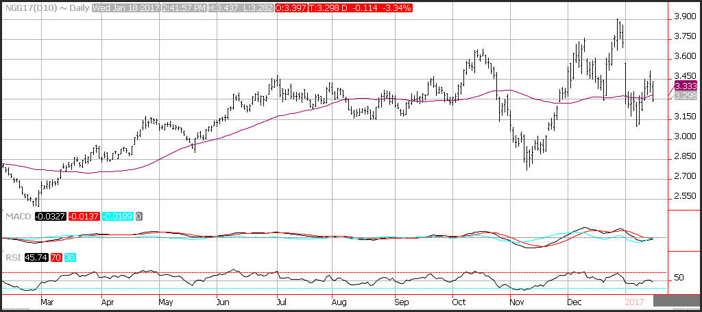 Natural gas prices tumbled lower dropping more than 3%, as traders await inventory number which are scheduled to be released on Thursday. Heating demand in the north east is likely to be less than normal as the weather is expected to be warmer than normal for the next 8-14 days according to the National Oceanic Atmospheric Administration.