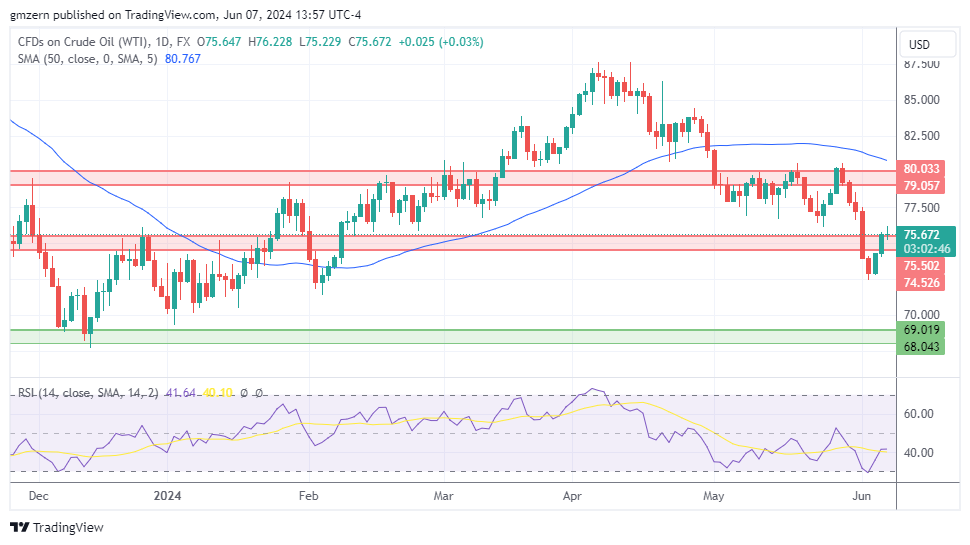 If WTI oil settles above $75.50, it will head towards the next resistance level at $79.00 – $80.00.