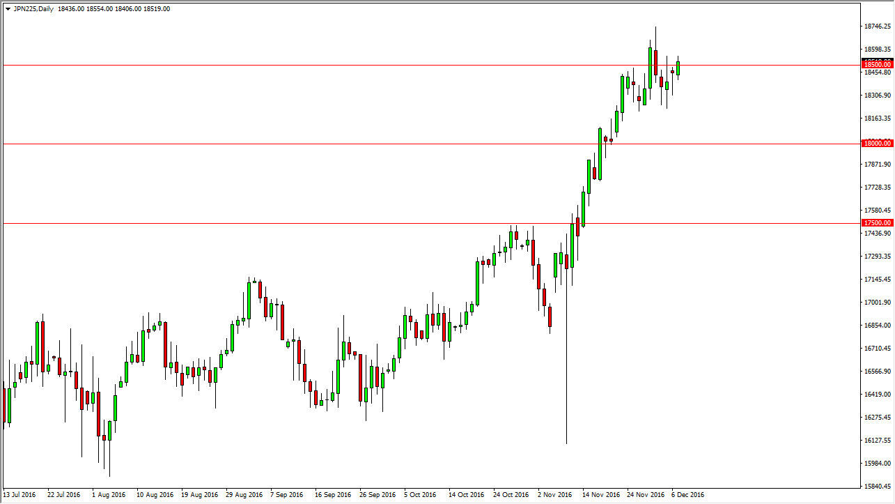 The Nikkei 225 had a slightly positive session on Wednesday, as we continue to test the ¥18,500 region. If we can break out above, I believe that this