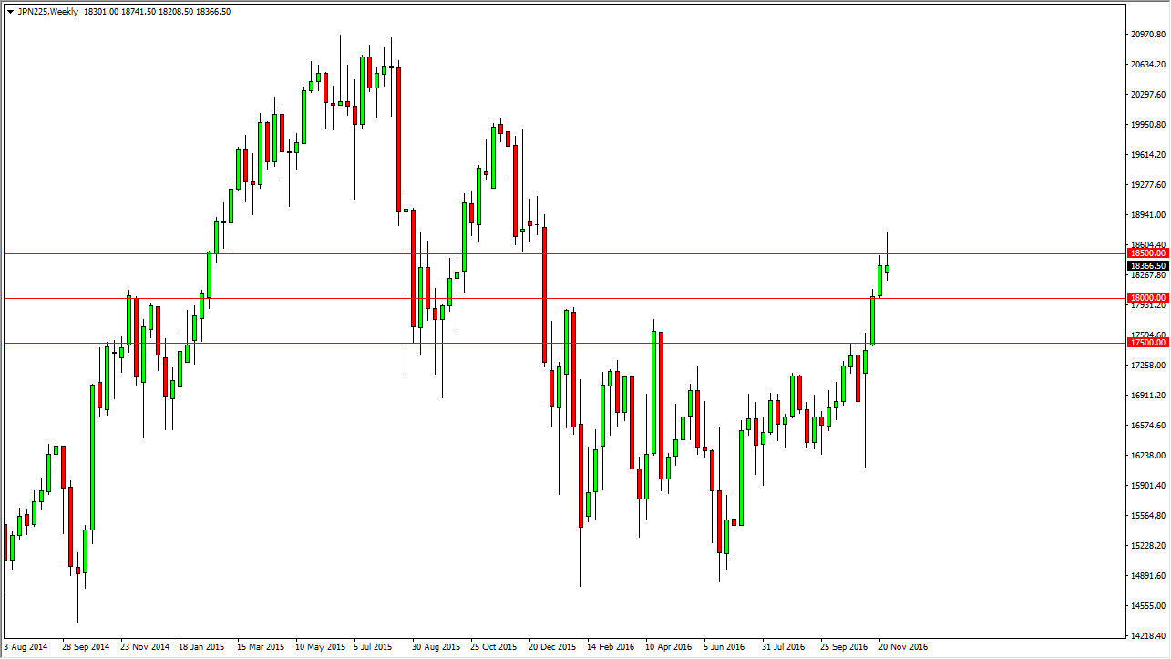 The Nikkei 225 initially rallied during the previous week, breaking well above the ¥18,500 level. However, there was more than enough resistance above