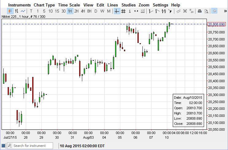 The Nikkei initially fell during the session on Monday, but turned back around to break out to a fresh, new high. Because of this, we believe that the Nikkei will continue to extend much higher, and that the next leg higher has just started. With this, we believe that the market will reach towards the ¥21,000 level, and then eventually towards ¥25,000 given enough time. The Bank of Japan continues to work against the value of the Japanese yen in general, and as a result we feel that this market will continue to go higher as they not only work in the currency markets, but by ETFs as well.