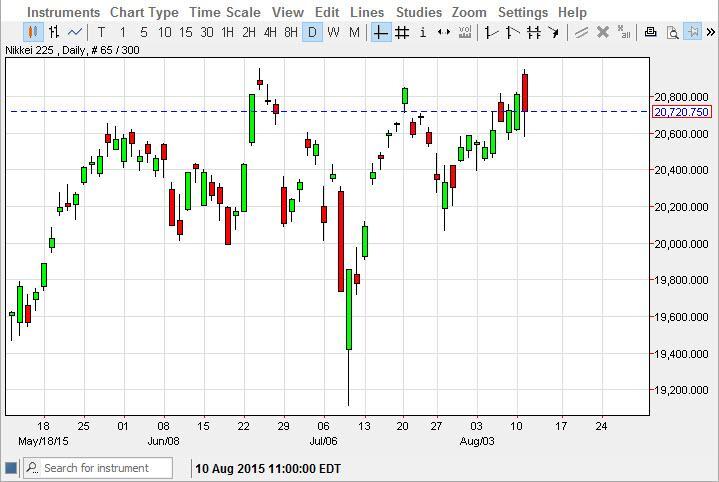 The Nikkei as you can see initially gapped higher at the open on Tuesday, and then fell all the way down to the ¥20,600 level. With this, the market