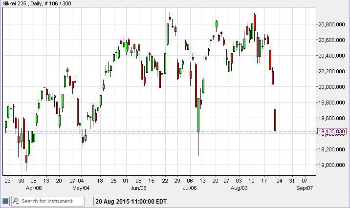 The Nikkei gapped lower and below the ¥20,000 level during the session on Friday, which of course is a very negative sign. Ultimately though, we think