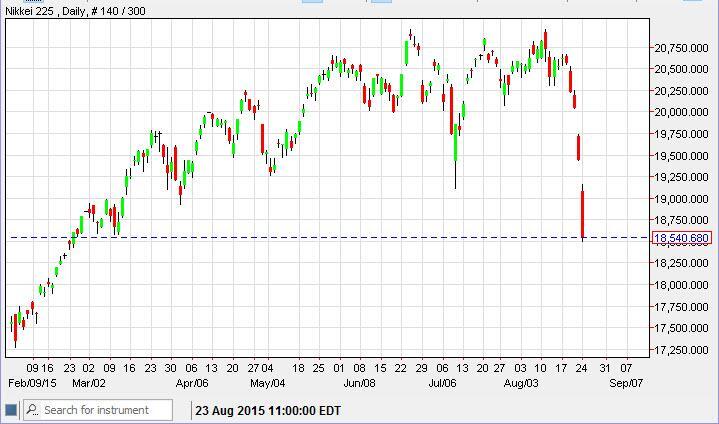 The Nikkei gapped lower at the open on Monday, as the indices around the world absolutely fell apart. We broke down below the ¥19,000 level, and then
