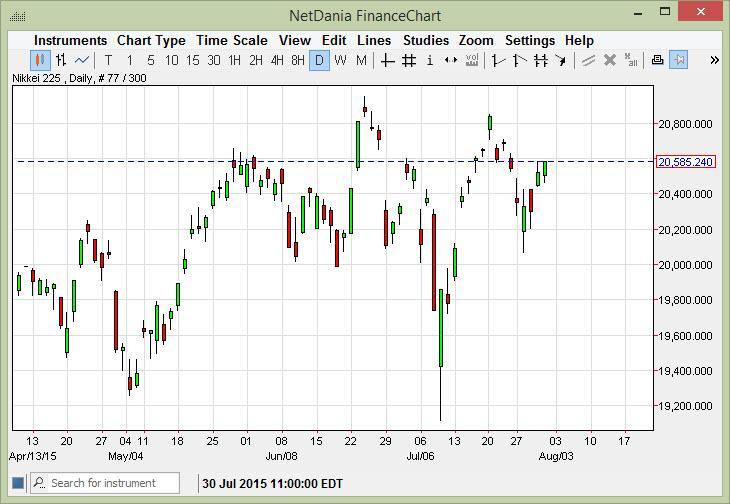 The Nikkei rose during the course of the session on Friday, reaching towards the ¥20,600 level. If we can break above there, we feel that the market then
