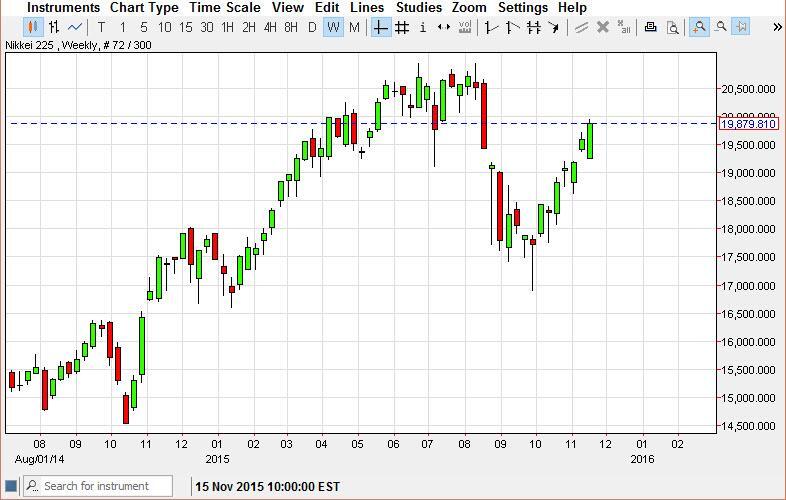 The Nikkei gapped lower at the open on Monday, but then turned back around to form a rather bullish and impulsively strong candle. With this being the