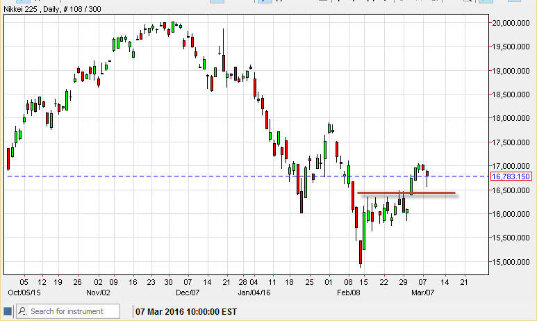 The Nikkei fell during the day on Tuesday, testing the ¥16,500 level. We turned around though, and at that point in time we formed a massive hammer. This