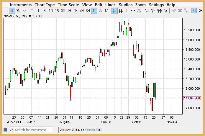 The Nikkei as you can see fell during the course of the day on Tuesday, as we continue to consolidate in this general vicinity. That being the case, we