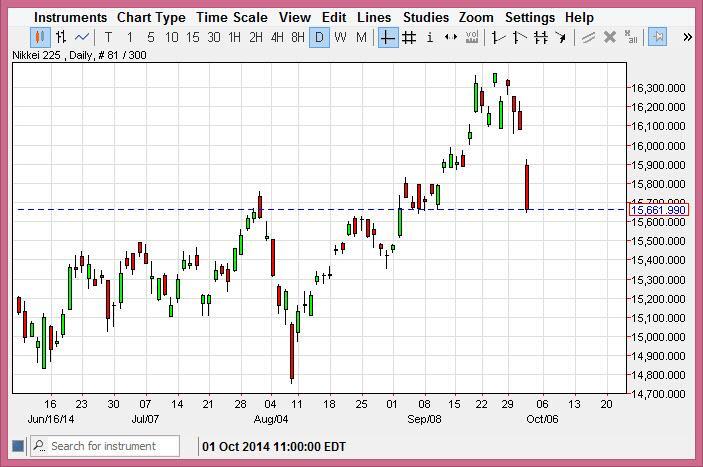 The Nikkei surprised us during the session on Thursday and gapped at the open and below the ¥16,000 level. There is still a significant amount of noise