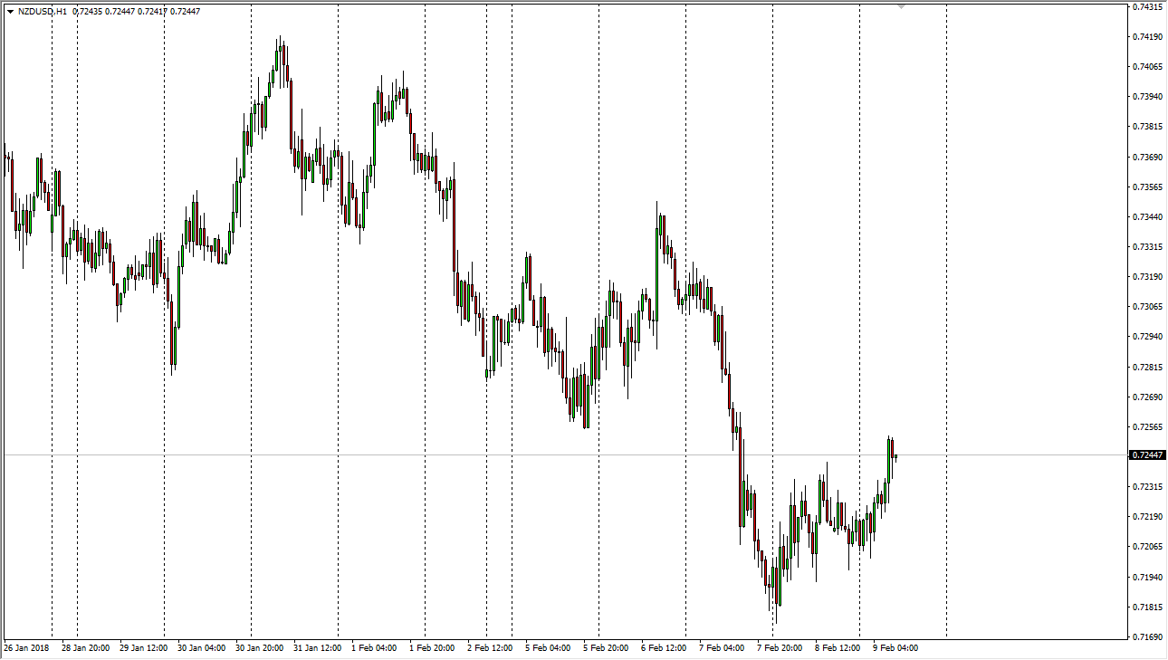 If we were to break down to a fresh, new low then I think the market is going to go looking towards the 0.70 level, and then the 0.68 level which is the bottom of longer-term consolidation. The 0.75 level above is the top of that consolidation, and a formidable resistance barrier. I believe that these pullbacks have been attempts to build up the necessary momentum to finally break out. The markets are going to be skittish, because quite frankly the stock markets had become deceptively quiet, so as soon as volatility comes back into play, people freak out. However, it looks as if we are seen quite a bit of pushback from the buyers, so I think that the upward momentum should return given enough time. I’d be a buyer above the 0.7275.