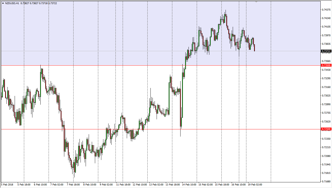 The New Zealand dollar has drifted lower during early trading on Monday, as we continue to see a bit of a churn just above the 0.7350 level. Longer-term, we are in an uptrend though, so I think it’s only a matter of time before the buyers return.