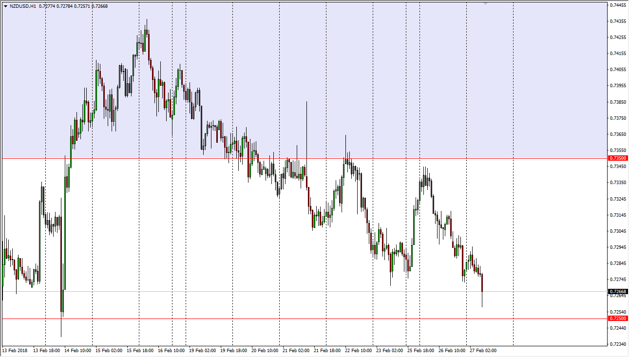 The New Zealand dollar has drifted a bit lower during the trading session on Tuesday, reaching towards the 0.7250 level. However, we have found plenty of support in that area, and it looks as if the buyers are starting to come back.