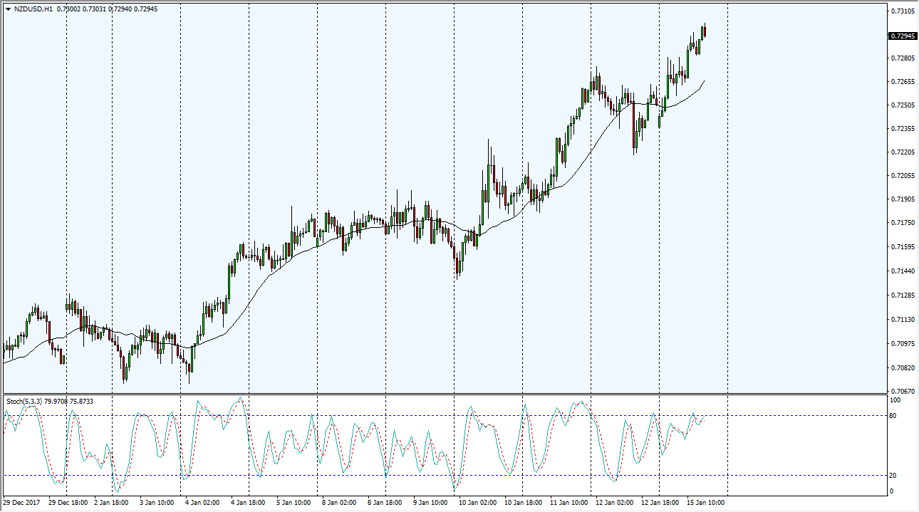 The New Zealand dollar initially gapped lower at the open on Monday, but turned around to rally towards the 0.73 handle above. With it being Martin Luther King Jr Day in America, volume was very thin once the Americans came on board, but at the end of the day it looks as if there has been a significant “anti-US dollar” bias in the marketplace. This lifted most commodities, and that of course had a beneficial effect on the New Zealand dollar as it is so highly leveraged of those commodities.
