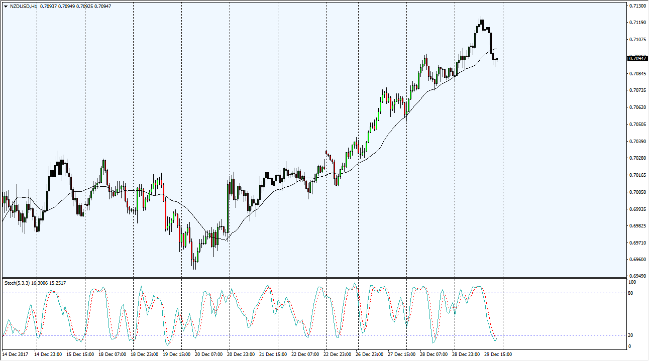 The New Zealand dollar initially tried to rally during the trading session on Friday, but found enough resistance near the 0.7125 level to turn things around, and then pull back to give back most of the gains. I think that the market pulling back is probably a sign of either exhaustion or the inability to hang on the gains due to a problem with volume. I believe that the market continues to be supportive longer-term, and as you look on the stochastic oscillator, you can see that we are in the oversold condition on the hourly chart, and it looks likely that we are ready to cross, and that of course is a bullish sign. I think that we will continue to find buyers on these dips, and that the New Zealand dollar will continue to find plenty of buyers as the kiwi dollar had been oversold for quite some time on the longer-term charts.
