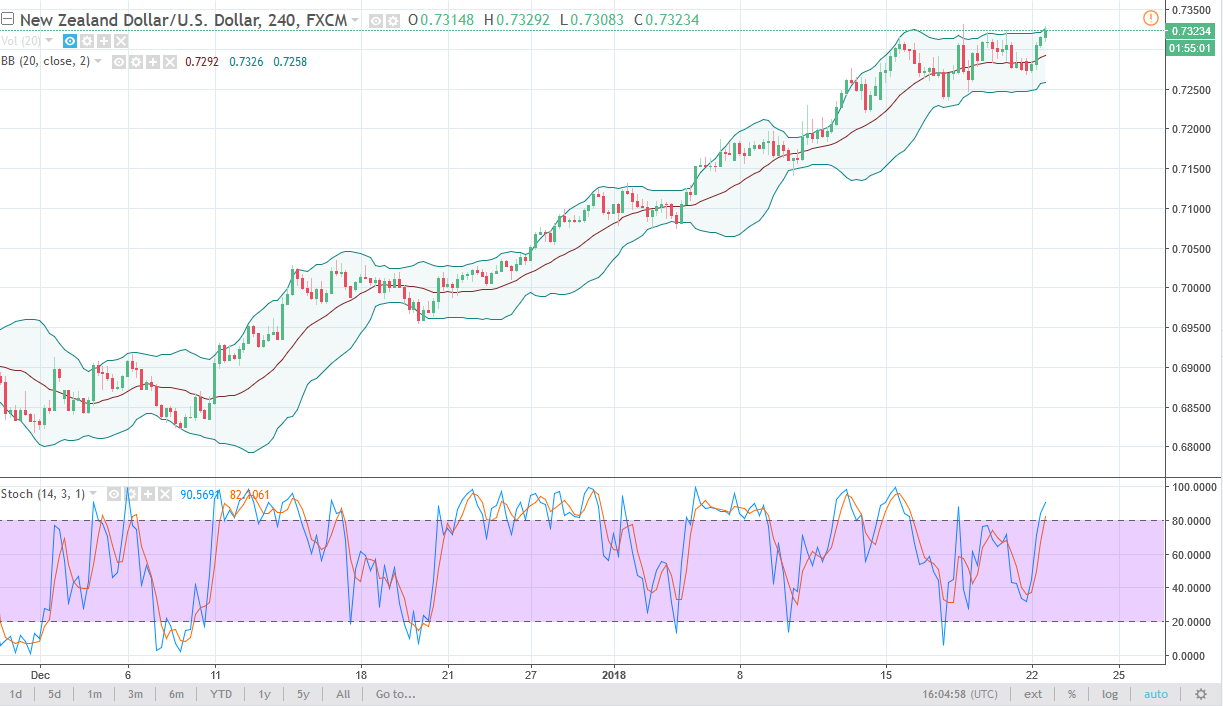 The New Zealand dollar rallied during the trading session on Monday, and as the Americans came on board, we continue to see even more strength. The market looks likely to go towards the 0.75 level above, which is the top of the overall consolidation during the previous year, and I think that with the significant bearish pressure in the greenback as of late, it makes sense that we continue to go higher. This will also be heavily influenced by how the commodity markets do, as the New Zealand dollar is so highly sensitive to the overall attitude of commodity traders.