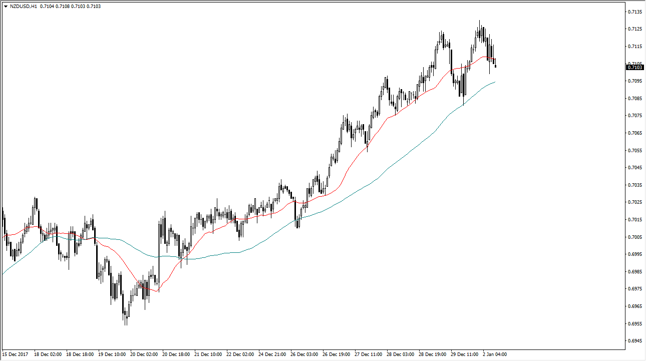 The New Zealand dollar fell a bit during the trading session on Tuesday, as traders came back to start the year. We are currently testing the 0.71 handle, and an area that of course is somewhat important due to the large, round, psychological significance of the whole number.