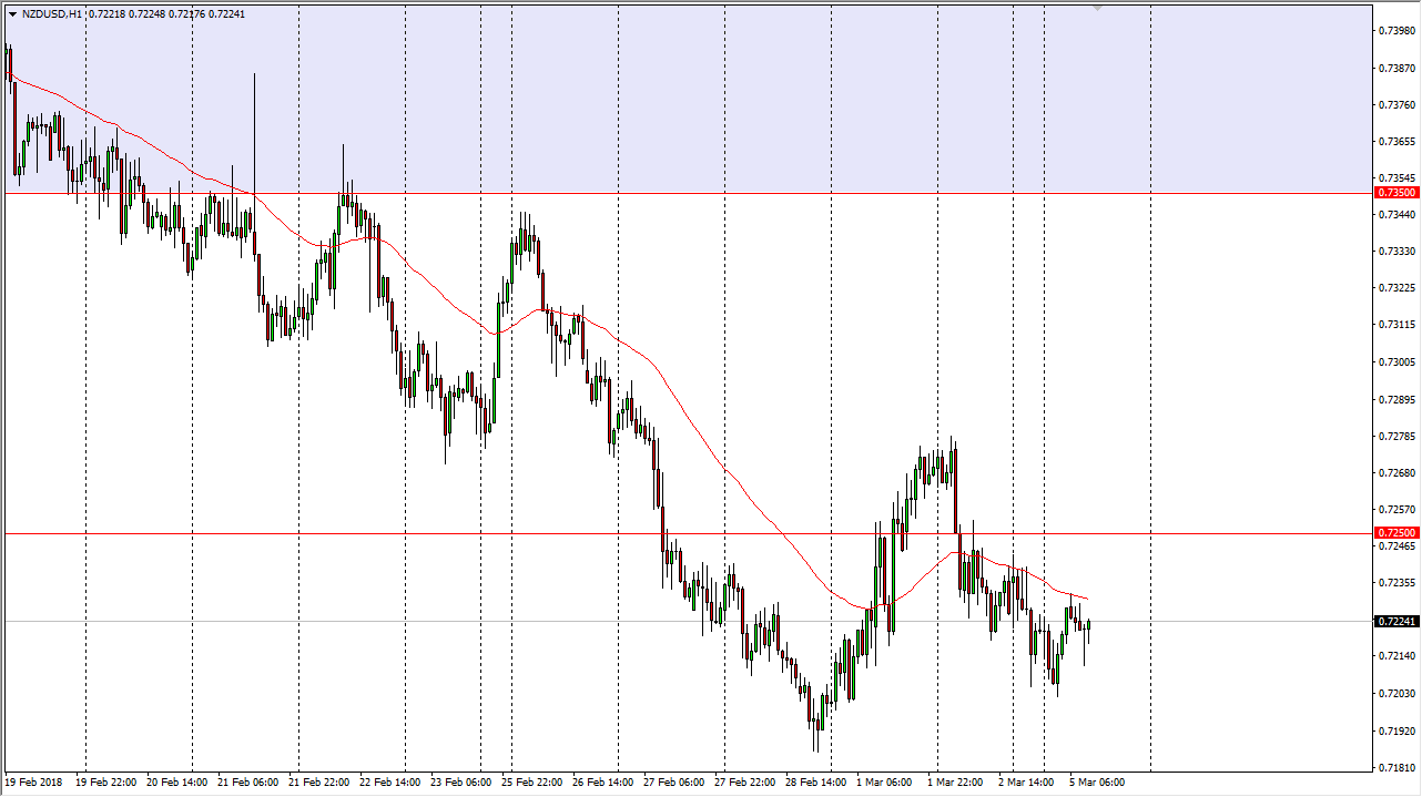 The New Zealand dollar has been a bit noisy during trading on Monday, bouncing from the 0.72 level underneath, showing signs of life yet again. I think that there is a significant amount of resistance just above though, so we may need to chop around to build the necessary momentum to go higher.