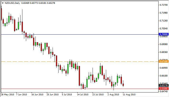 The NZD/USD pair initially tried to rally during the course of the session on Tuesday, but turned back around and form a shooting star. The shooting star sits directly above the 0.65 handle, which we feel is the massive support that is keep the market lifted a bit at this point. We have no interest whatsoever in buying this market, we look at rallies with significant suspicion. A move below the 0.65 handle has us selling as the market should then break down to the 0.6250 level. Ultimately, we believe that this market does break down due to what’s going on in the commodity markets.
