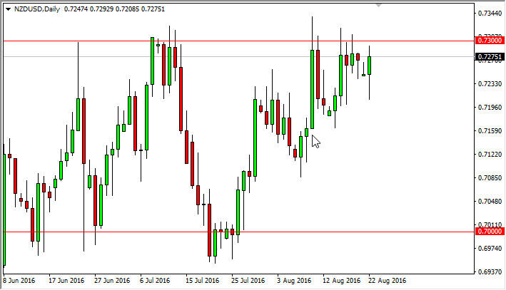The NZD/USD pair initially fell during the course of the session on Monday, but turned right back around at the 0.72 level. With this being the case, the market looks as if it is ready to turn back around and try to break out and above the 0.73 level. With fact, I believe that breaking above there would more than likely send the market looking for the 0.75 level. With this being the case, there is plenty of reason to think that we will continue to go higher over the longer term as we have a nice interest rate differential.