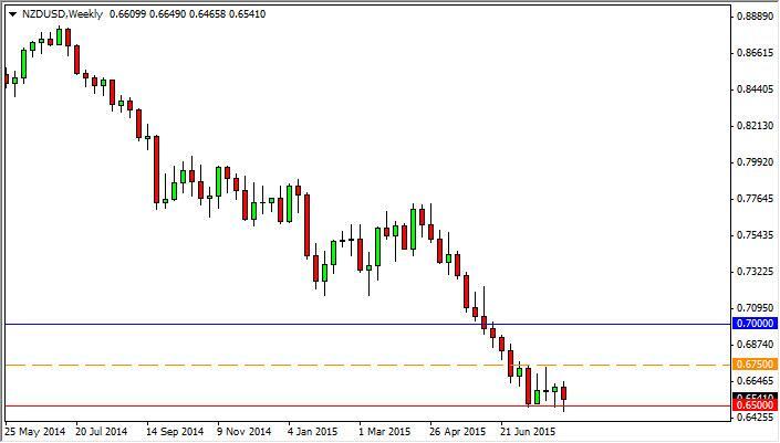 The NZD/USD pair fell during the course of the week, slamming into the 0.65 level. This is a massive support level, so having said that a bounce is in the
