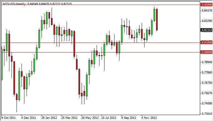 The NZD/USD pair fell hard during the week as the 0.85 level continues to be far too resistive for this market to conquer. However, we are starting to get