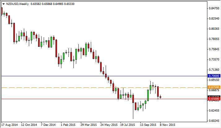 The NZD/USD pair went back and forth during the course of the week, as we continue to hover above the 0.65 handle. However, the market sees quite a bit of