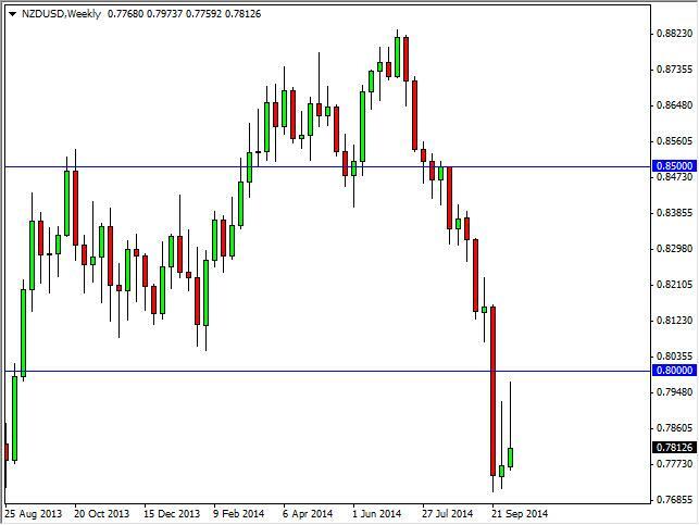 The NZD/USD pair tried to rally during the course of the week, but found the 0.80 level to be resistive, and as a result we ended up turning around in