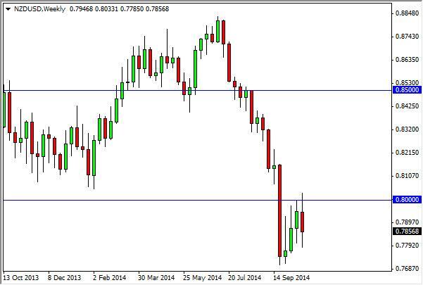 The NZD/USD pair went back and forth during the course of the week, testing the 0.80 level for resistance. It did in fact find it there, and as a result