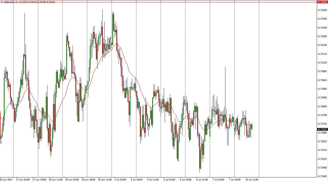 I believe that this is a market that small positions are about the only thing that you can get involved with, as you will be tying up far too much margin if you are heavily invested in this market. The commodities markets are highly influential of the New Zealand dollar, but currently there isn’t much to move the markets overall, and the next couple of sessions are very light with economic announcements. Because of this, I believe that this is a market that quite frankly will be difficult to deal with when it comes to larger positions, because there will be other more lucrative propositions in the Forex markets that you can take advantage of. If we did breakdown below the 0.72 level, then I think we could get a little bit of a selloff. Ultimately, we are just treading water.