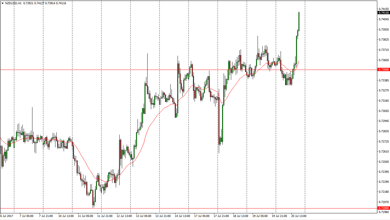 The New Zealand dollar rallied during the day after initially falling on Thursday. The 0.7350 level seems to be an area where there is a significant amount of support, and the fact that we broke above to the upside and in an impulsive manner suggests that we are going to continue to reach towards the 0.75 handle. I think that a pullback offers value, and that traders will get involved every time we pull back based upon the volatility in the US dollar. I believe that the New Zealand dollar is going to go looking for the 0.75 handle, so pullbacks should offer nice entry points for traders to get involved, if we get them. I believe that the 0.7350 level should offer a significant amount of support. If we can break above the 0.75 level, the market can go much higher and I think probably will.