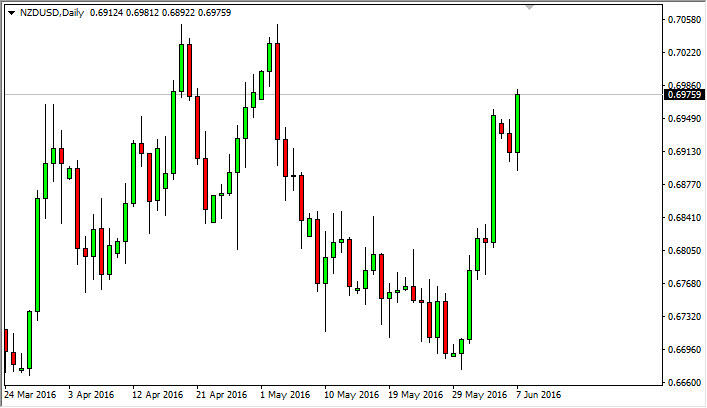 The NZD/USD pair initially tried to fall during the day on Tuesday but then turned around to form a very bullish candle. At this point in time, looks like we’re going to test the 0.70 level, and as a result it’s very likely that if we can get above there the market will be reaching towards the highs again at the 0.7050 level. Pullbacks should find plenty of support just below, as the market looks heavily bullish at this point in time and the 0.69 level should be the “floor” in this market.