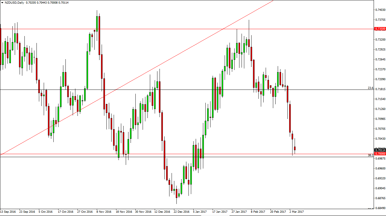 The NZD/USD pair went back and forth during the day on Friday, and if we can break above the top of the range, I believe that the market will go higher, bouncing towards the 0.7150 level. Below, I think that the 0.70 level offers quite a bit of support so I’m not willing to sell. I need to see the resistance above broken to go long. The meantime, expect quite a bit of volatility but you should also keep in mind that the New Zealand dollar is highly influenced by the general attitude of commodity markets and therefore you must keep an eye on them.