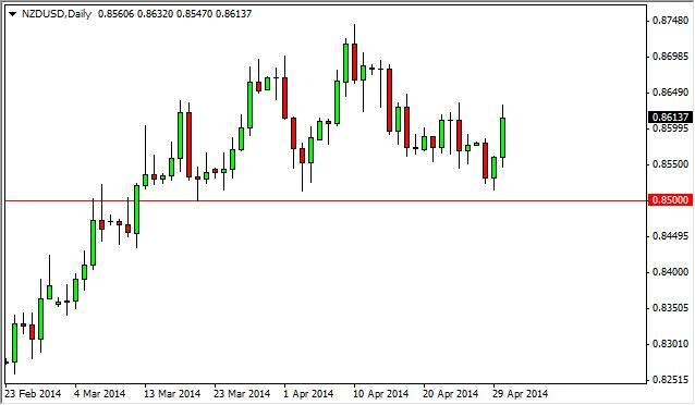 Of the NZD/USD pair initially fell during the session on Wednesday, but found enough support at the 0.8550 level to turn things back around and go higher. Because of this, we feel that the market will continue to grind even higher than current levels, and that a move above the 0.8650 level signals and we will in fact trying to get to the 0.8750 level, and then ultimately the 0.90 level. That is a longer-term call of ours, but we do think that ultimately this market will in fact continue to go higher over time. After all, the New Zealand dollar was be down rather drastically last year, probably a bit too much.