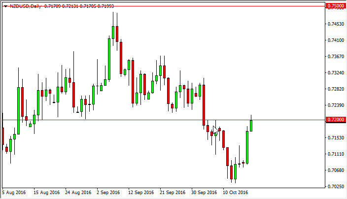 The New Zealand dollar rose during the course of the session on Tuesday, slamming into the 0.72 level. This is where we should start to see quite a bit of