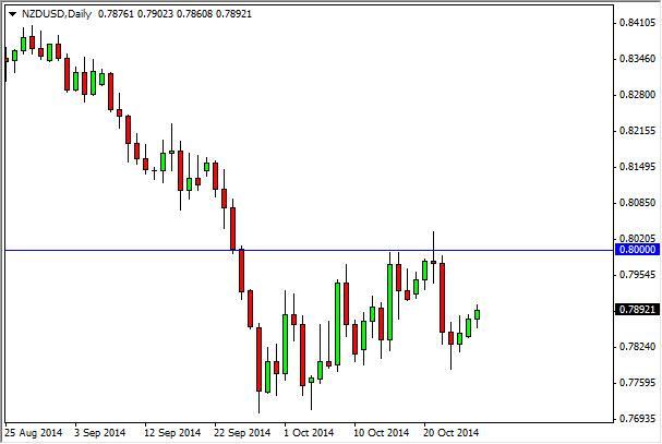 The NZD/USD pair initially fell on Monday, but turned back around to form a slightly positive candle. However, we believe that there is a significant amount of resistance above, all the way to the 0.80 level. On top of that, the Royal Bank of New Zealand continues to wish the Kiwi dollar to a much lower level, and they had recently entered the marketplace to start selling it. Because of this, we do not have an interest in buying this market, and we believe that waiting for resistive candles is the way to go in this marketplace as we only want to sell.