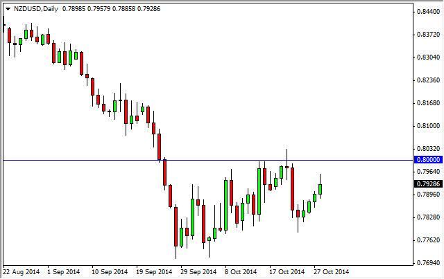 The NZD/USD pair recently broke higher during the course of the day on Tuesday but found enough resistance near the 0.7950 level to turn things back