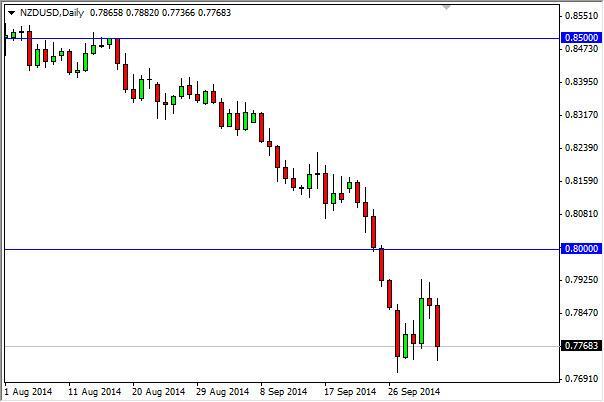 The NZD/USD pair fell during the course of the session on Friday, heading to the 0.7750 level. That level of course offered support, and as a result we feel that this market should continue to be one that’s very bullish. If we break down below that level, we think that the market will then head to the 0.75 level, which is a much more significant longer-term level. Any rally at this point in time is something that would be sold, and we have no interest whatsoever in buying. In fact, we believe that the 0.80 level will continue to be massively resistive.