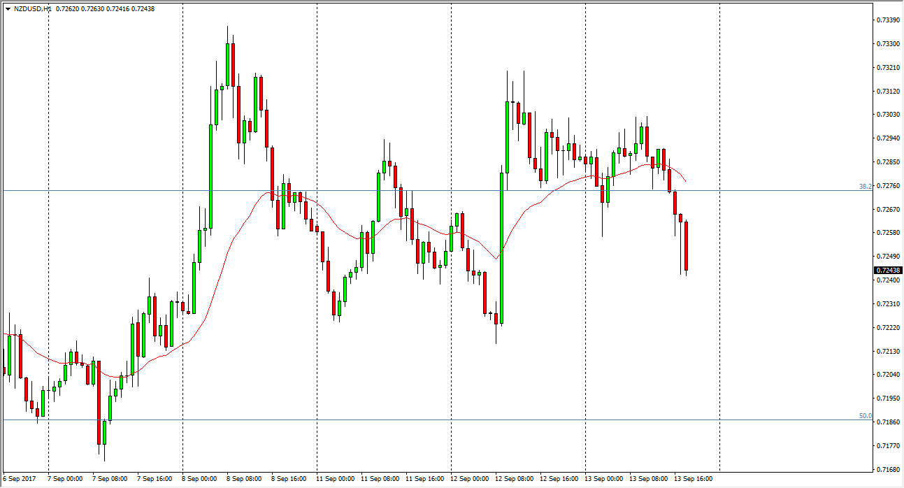 The New Zealand dollar fell significantly during the session on Wednesday, as there are hints of a tax deal happening in the United States. Ultimately, the market looks likely to favor the US dollar, and it makes a lot of sense that we will go looking towards the 0.72 level underneath, perhaps even lower than that. If commodities fall, it’s likely that the New Zealand dollar will get hit as well. Ultimately, I don’t have any interest in buying this market and the short-term, I believe that we are going to continue to see bearish pressure.