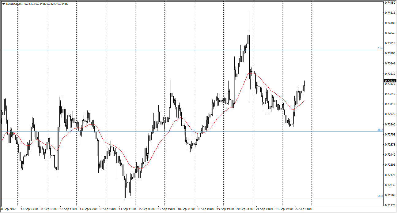 Ultimately, I believe that the 0.74 level above is the target if the buyers get away, but on the other hand, if we break down from here I think the market should then go to the 0.72 handle. I believe that the overall uptrend is still very much intact, but we have certainly seen a significant amount of trouble as of late. With the Federal Reserve looking likely to clean its balance sheet out, that does put a bit of bullish pressure on the US dollar, but ultimately, I think that as markets digest this news in a positive light, eventually the New Zealand dollar will come into vogue yet again. Pay attention to the New Zealand elections over the weekend, that could influence this currency as well. Because of this, I think we will continue to see choppiness but I still favor the upside in general.
