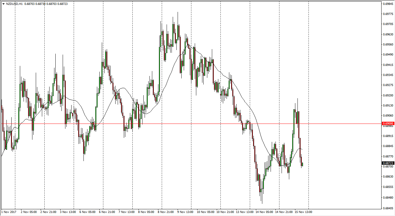 The New Zealand dollar was very volatile during the trading session on Wednesday, breaking above the 0.69 level for a moment, but turned around to break