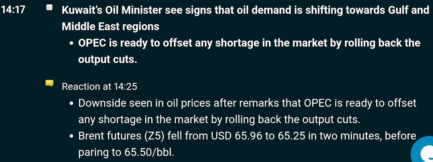 The rally had its wings clipped on Thursday when the Kuwaiti oil minister came out with the above remarks. I took a small short position on the front at the time, yet the market was not ready to price the risk back out, and I flattened the position within 2hrs.