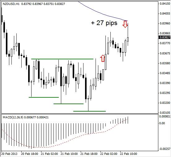 In the last post, I covered a simple straddle trade in the NZD-USD on the 1H chart. The move came quickly, still in the early trading hour, pushing the price to the 100 SMA. Unfortunately, that proved to be a strong resistance and the NZD-USD started to pull back. I decided to get out right there and then with 27 pips in profit.
